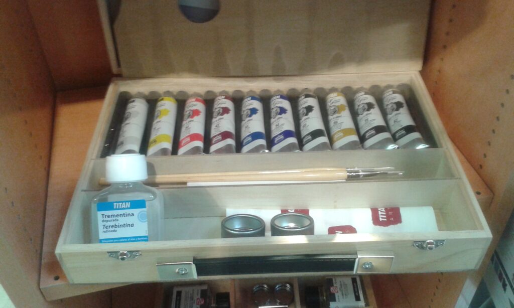 Tenemos una amplia gama de estuches o maletines de óleo, de distintas marcas, con varios acabados, interior metálico o madera, con todo el material necesario para empezar a pintar.