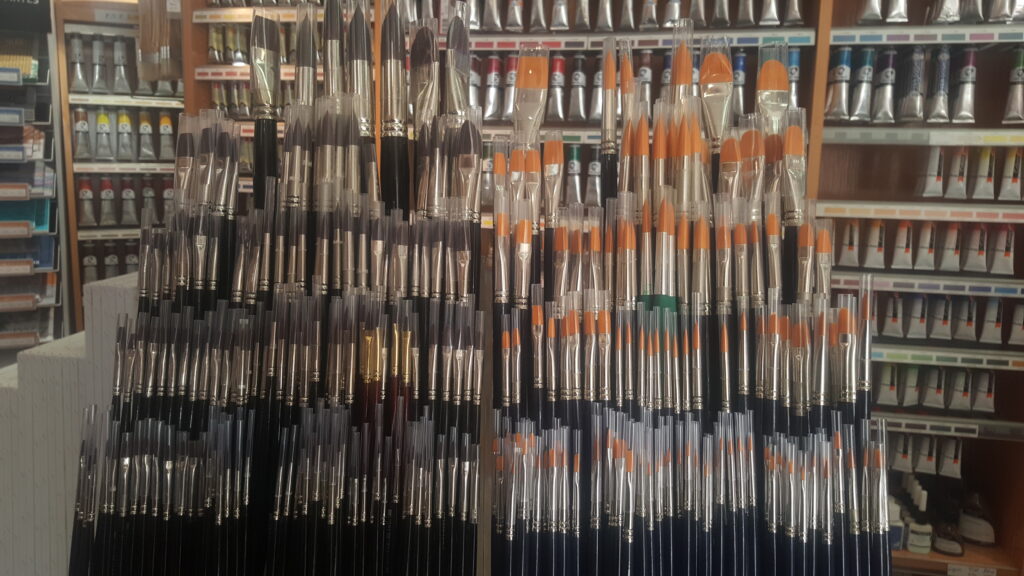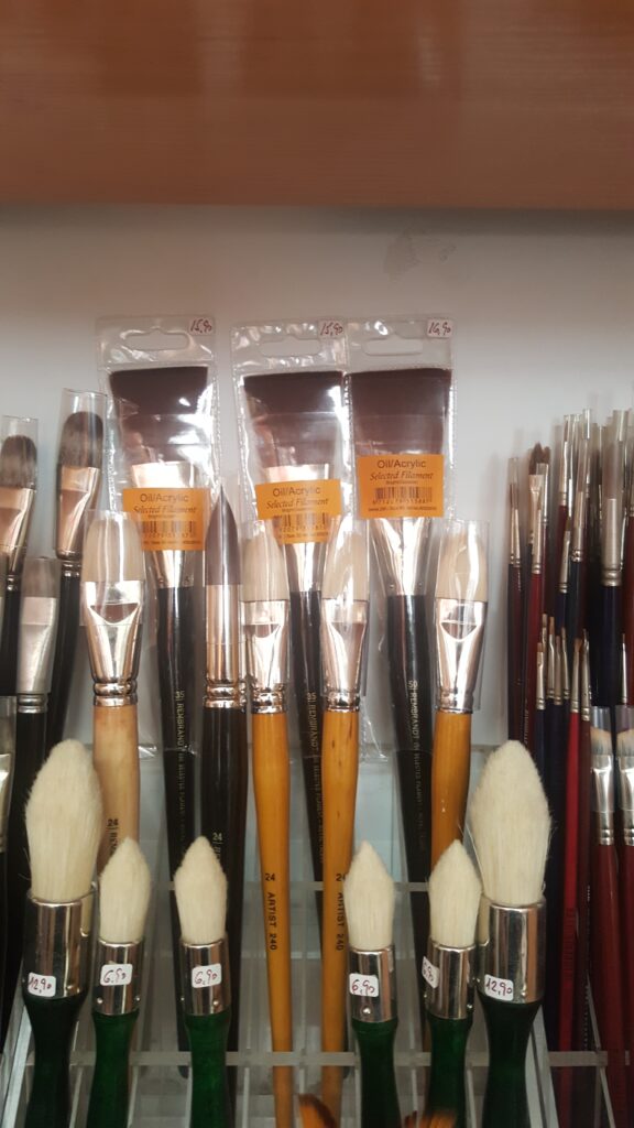 También disponemos de un extenso surtido de paletinas, tanto de pelo de cerda, indicadas para el barnizado de las pinturas, como de pelo sintético para las primeras manchas del lienzo o grandes superficies