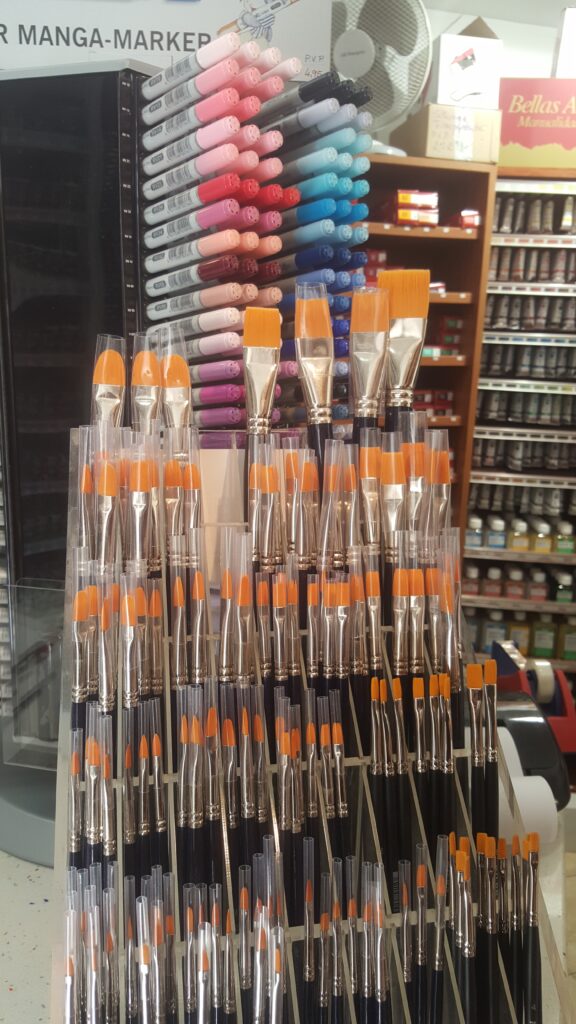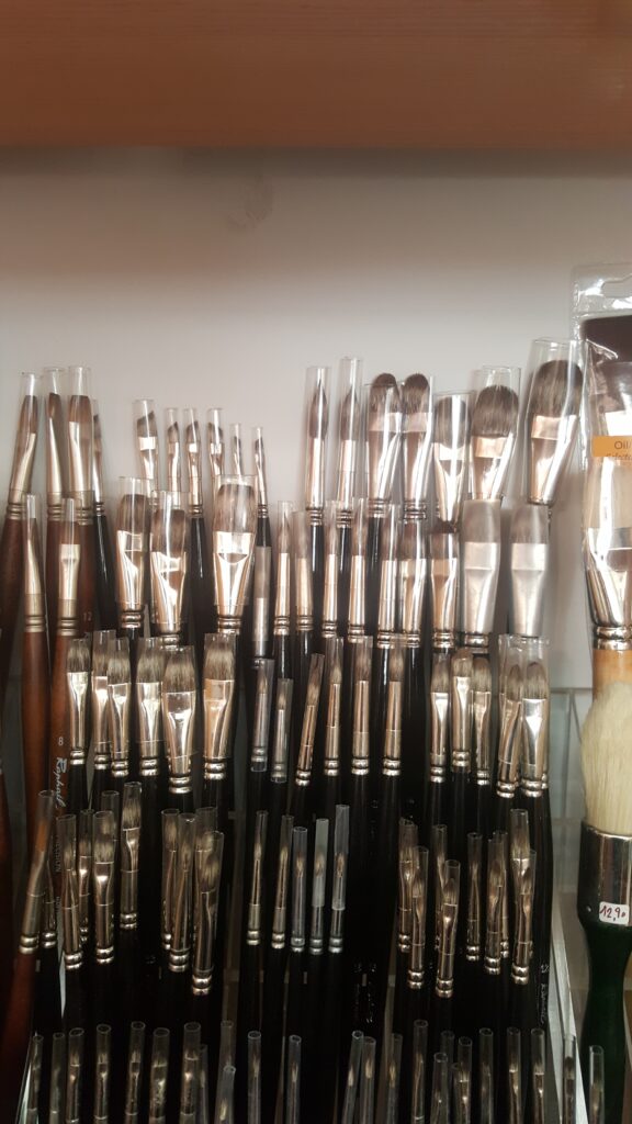 Según el tipo de pelo, la oferta más amplia la tenemos en el “Sintético”, por ser un pincel muy perfeccionado a día de hoy, imitando perfectamente la suavidad del pelo de marta y con una muy buena tensión que permite su fácil dominio. También tenemos de pelo de cerda, pelo de marta roja y marta kolinsky, pelo de ardilla petit gris, pelo de buey, pelo de pony y pelo de cabra.
